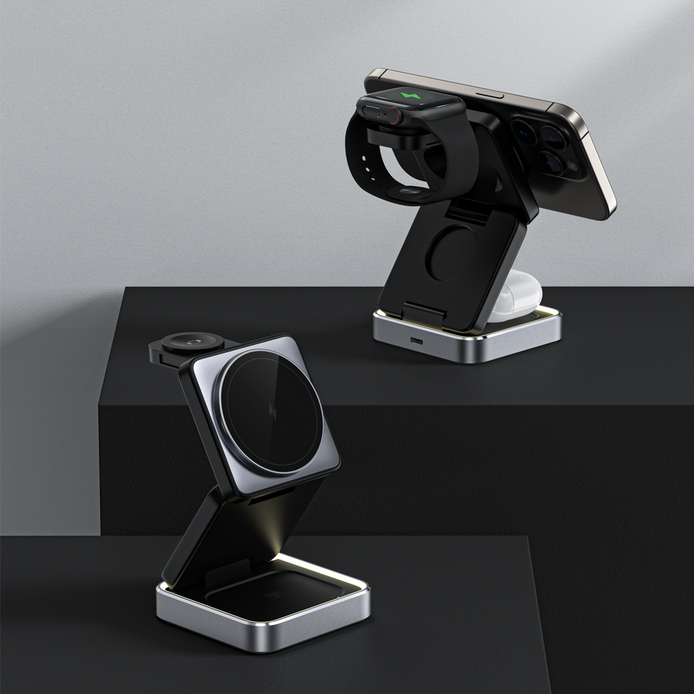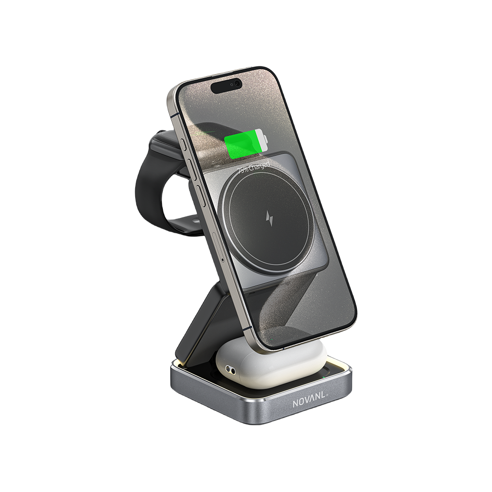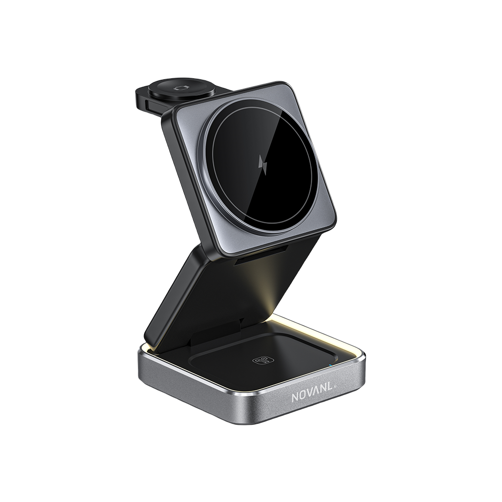 Die NOVANL WireUp Compact Pro 15W MagWireless Station ist die perfekte Mischung aus Leistung, Mobilität und Spitzentechnologie . Diese kompakte und elegante kabellose Ladestation wurde speziell für Benutzer entwickelt, die den Komfort des schnellen kabellosen Ladens in einem tragbaren Formfaktor wünschen. Egal, ob Sie zu Hause, im Büro oder unterwegs sind, die NOVANL WireUp Compact Pro sorgt dafür, dass Ihr MagSafe -kompatibles iPhone, Ihre AirPods und andere Qi-fähige Geräte schnell und sicher aufgeladen werden. Seine starke magnetische Ausrichtung und das Hochgeschwindigkeitsladen machen es zu einem unverzichtbaren Zubehör für moderne Technikbenutzer, die bei ihren Ladelösungen Effizienz und Stil verlangen.