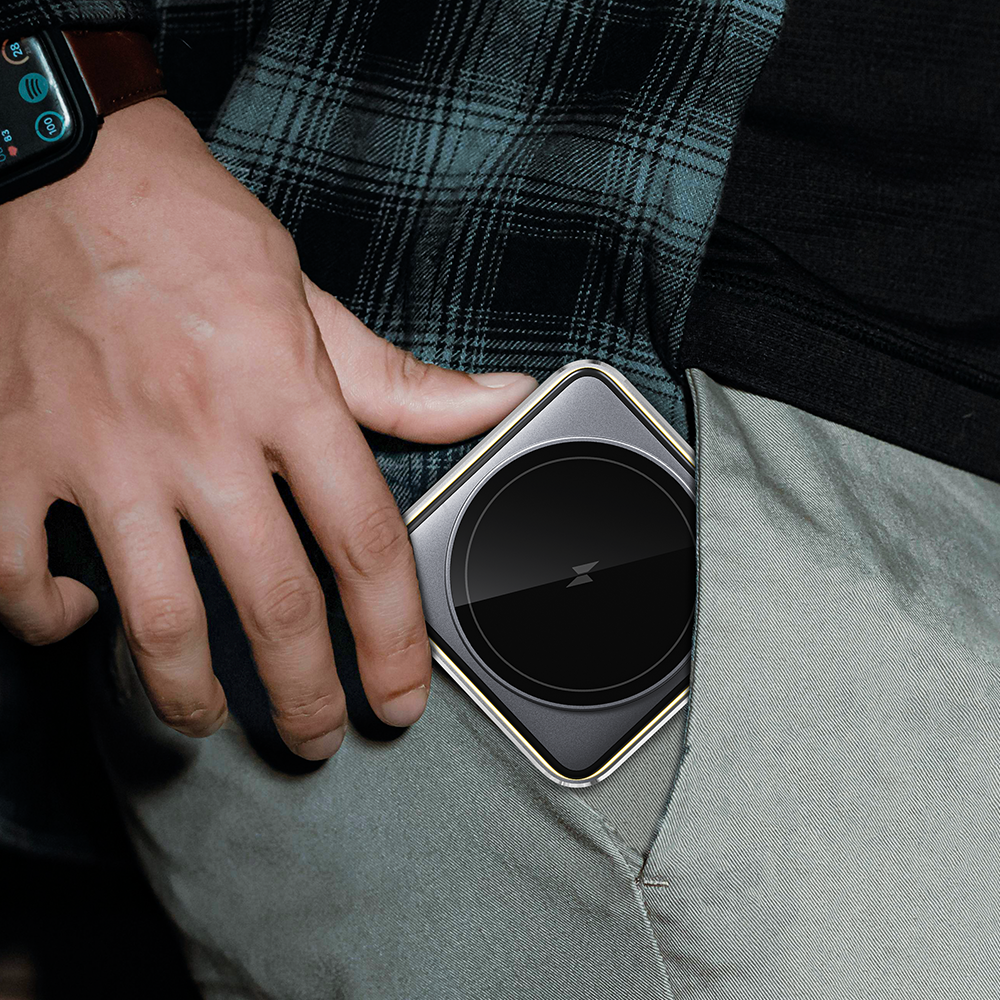 Laden von zwei Geräten: Das NOVANL WireUp Compact Pro ist vielseitig und ermöglicht es Ihnen, zwei Geräte gleichzeitig aufzuladen. Sie können Ihr iPhone auf die magnetische Ladefläche legen und das zusätzliche Ladepad verwenden, um Ihre AirPods oder andere Qi-fähige Geräte drahtlos aufzuladen. Diese Mehrgerätefunktion macht mehrere Ladegeräte überflüssig und sorgt dafür, dass Ihre Geräte an einem praktischen Ort mit Strom versorgt werden.